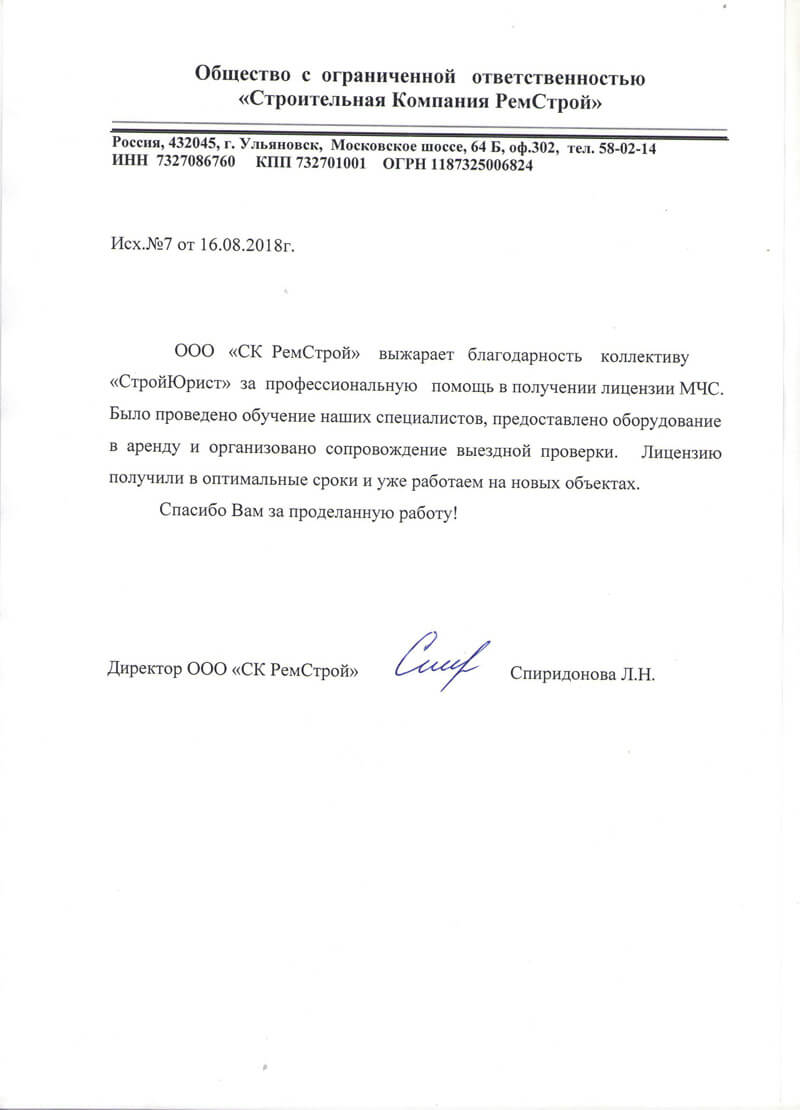 Отзывы клиентов "СтройЮрист" по лицензированию МЧС
