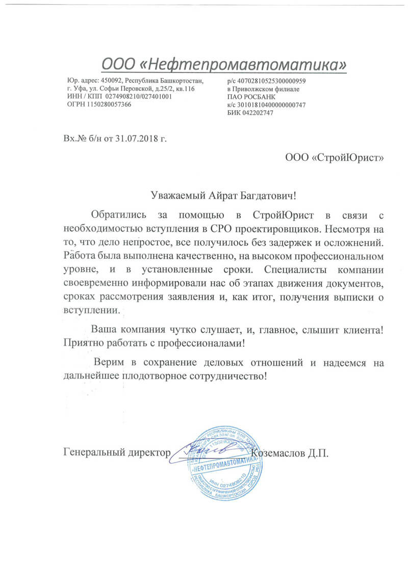 Отзывы клиентов "СтройЮрист" по вступлению в СРО