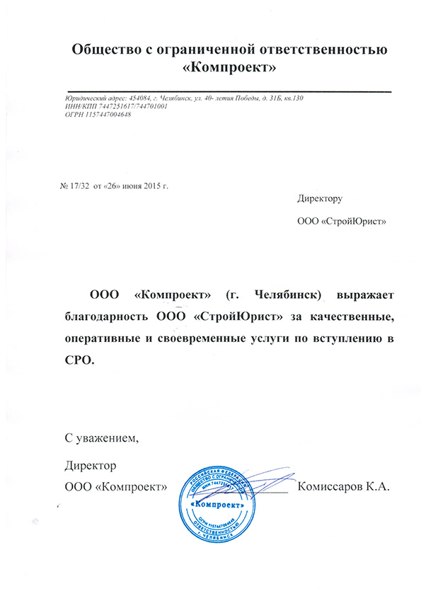 Отзывы клиентов "СтройЮрист" по вступлению в СРО