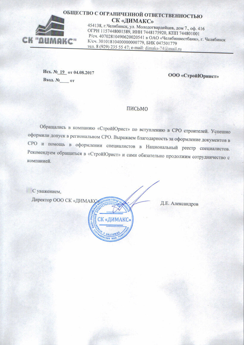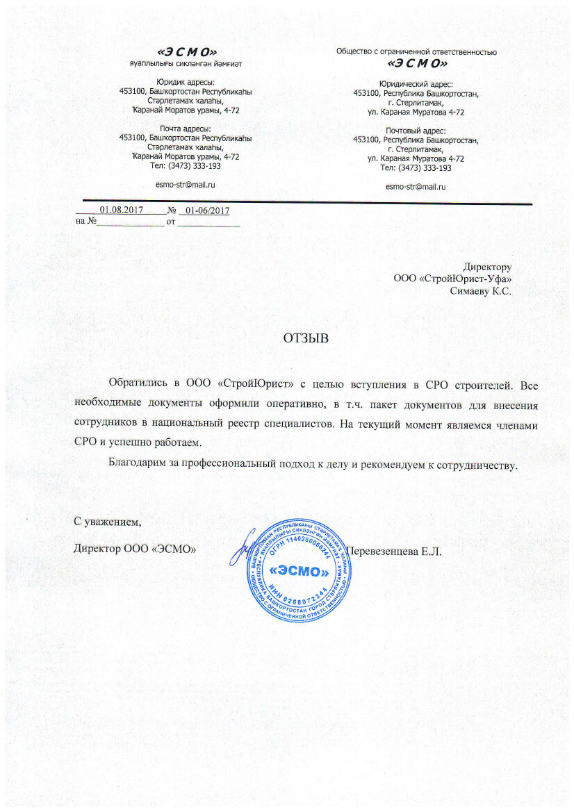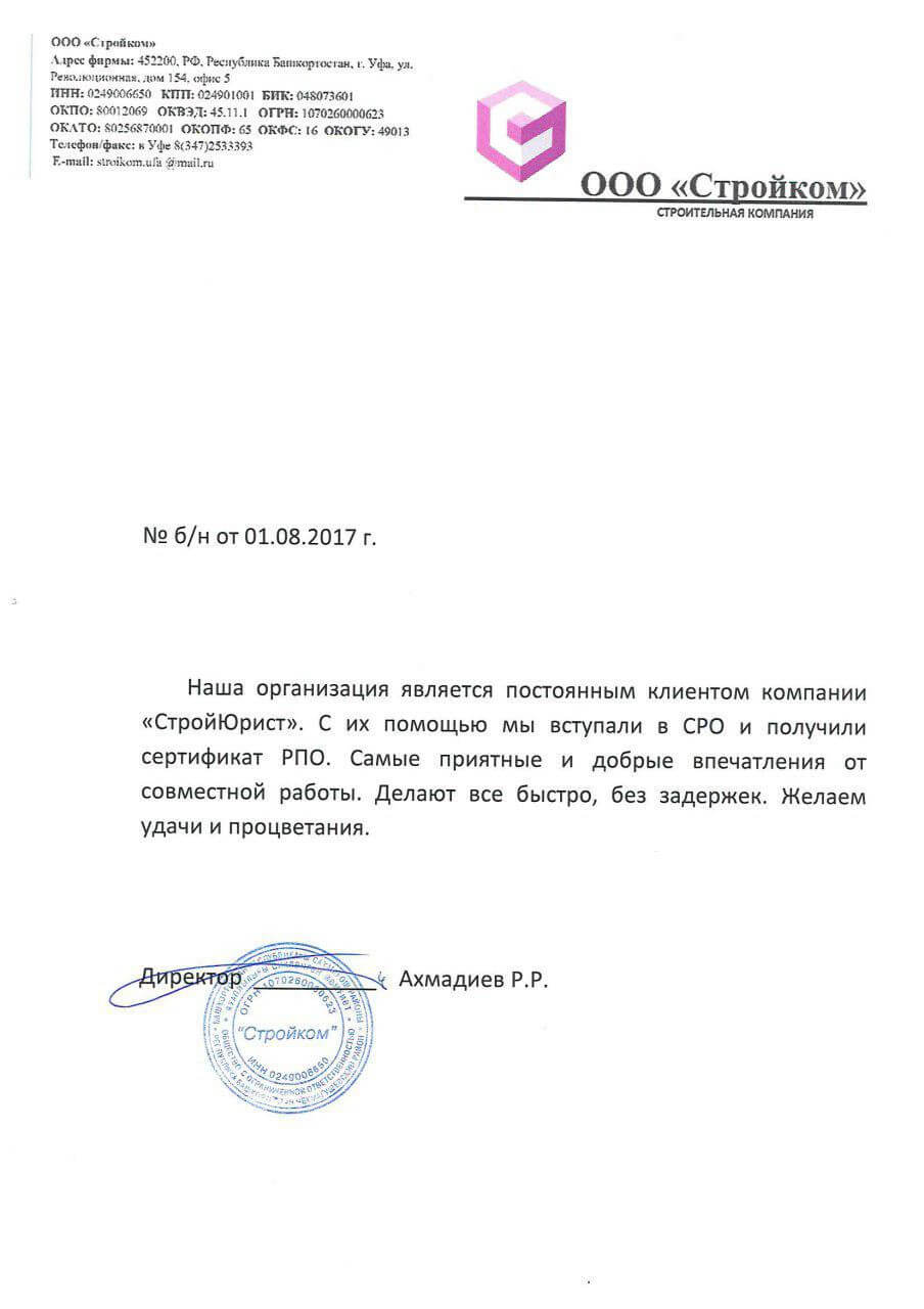 Отзывы клиентов "СтройЮрист" по вступлению в СРО